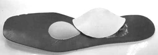 Dient der Fußentlastung bei einer Innen- oder Außenrandüberlastung. Die Innenranderhöhung findet Anwendung bei einem X-Bein. Bei einer O-Beinstellung verwendet man eine Außenranderhöhung. Die Außenranderhöhung dient auch zum Ausgleich eines unter Sohlenniveau liegenden Großzehenballens. Der Fuß findet nicht sein Lager und Bett und tritt außen ab.
